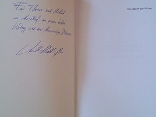 Doch dann schlage ich auf und lese diese Widmung: “Für Thomas und Michael im Anschluss an einen tollen Vortrag und eine kurzweilige Diskussion” und dann war es mir klar es konnte nur das Buch eines unserer Vortragsteilnehmers sein.