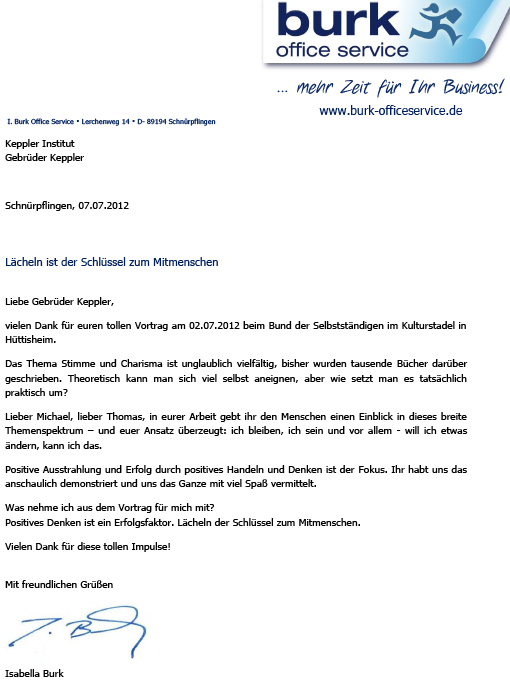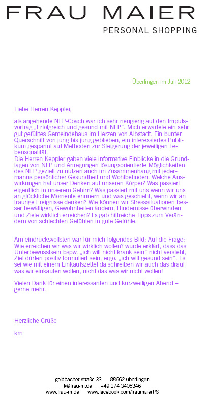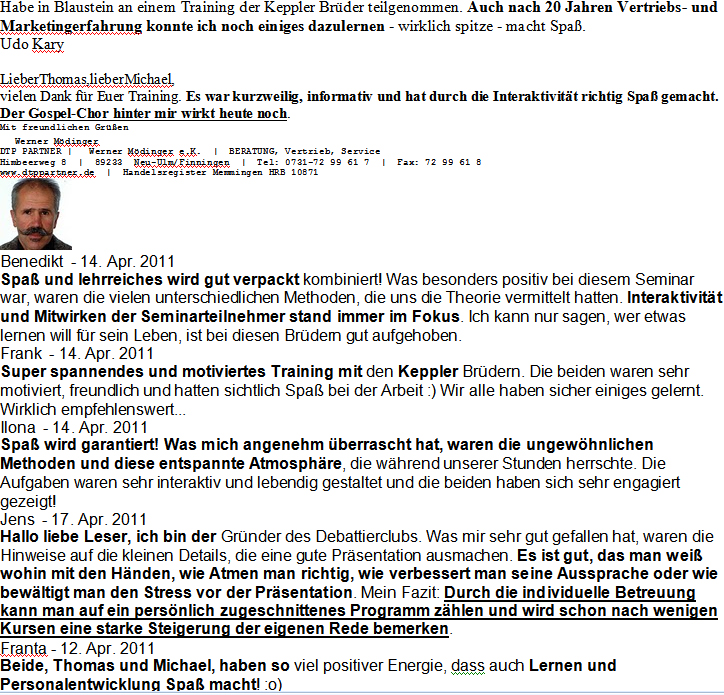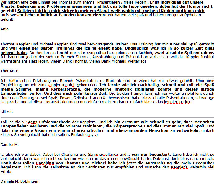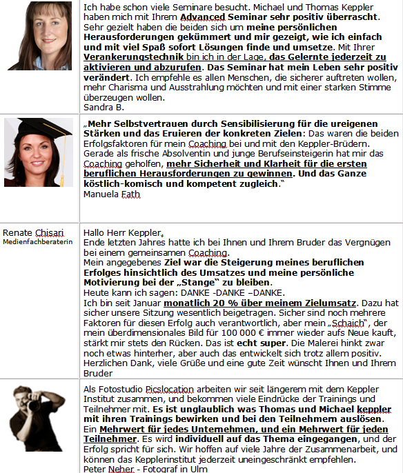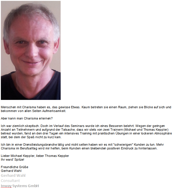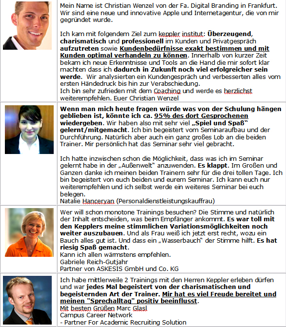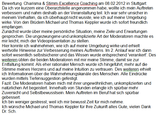 Das sagen TN über CHARISMA & STIMM EXCELLENCE- /NLP